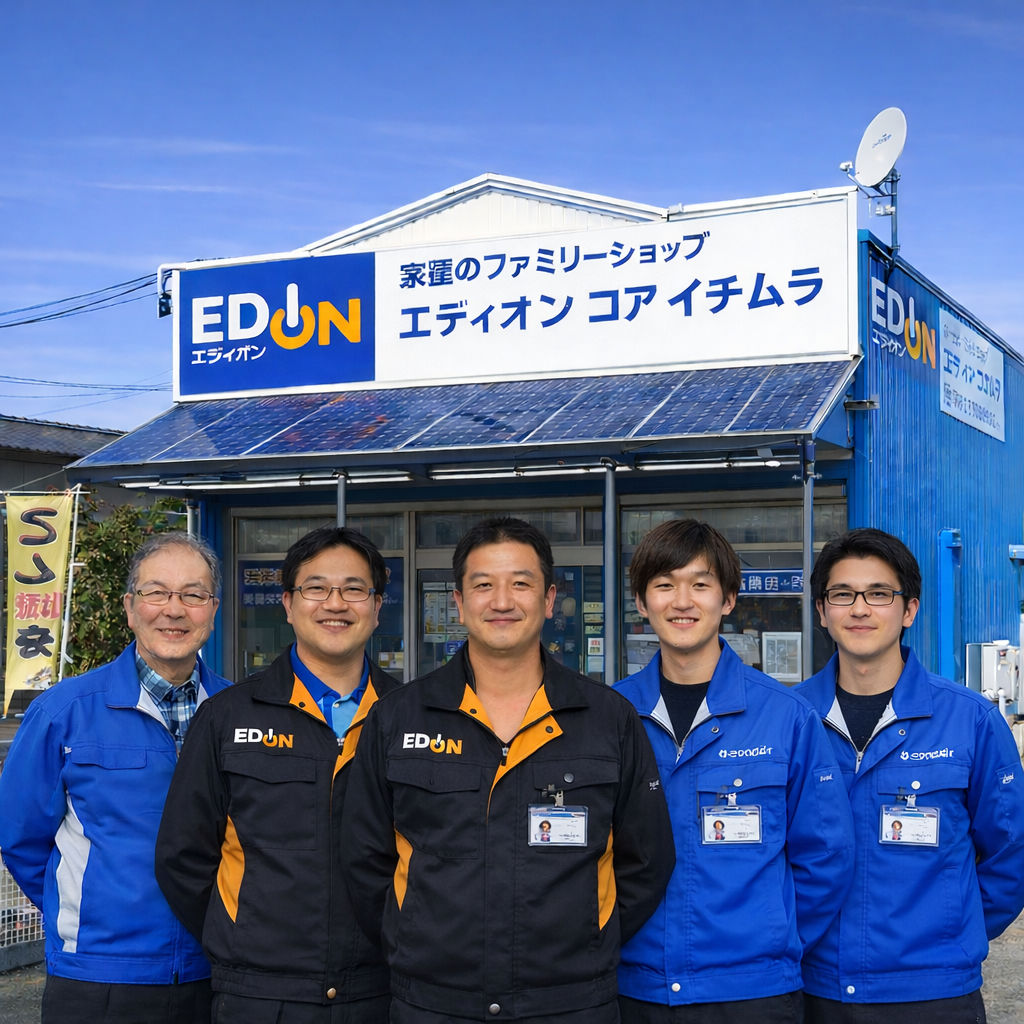 当店は、家電量販店「エディオン」のファミリーショップです。量販店と同じ価格で、専門店ならではの丁寧なサービスをお届けします。