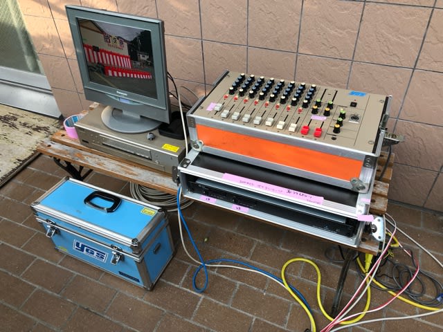 ステージはスピーカーでワイヤレスマイクとCDから音出しと広間にはカメラのマイクから別途音声を送っています。