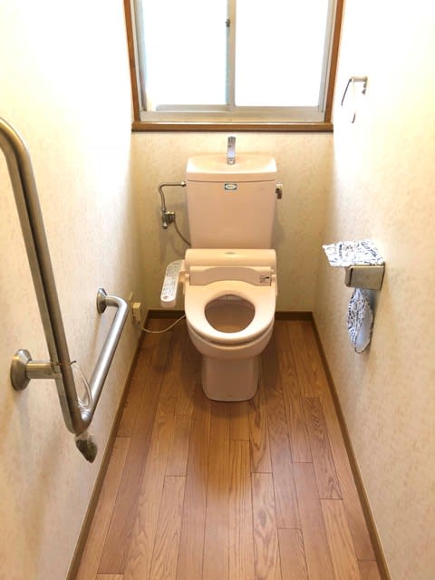 今回は朝、便器、換気扇、手すりなどを取り外し、そのあとクッションフロアの張替え壁クロスの張替えをしたまた元に戻すの夕方までにはかかりませんでした。