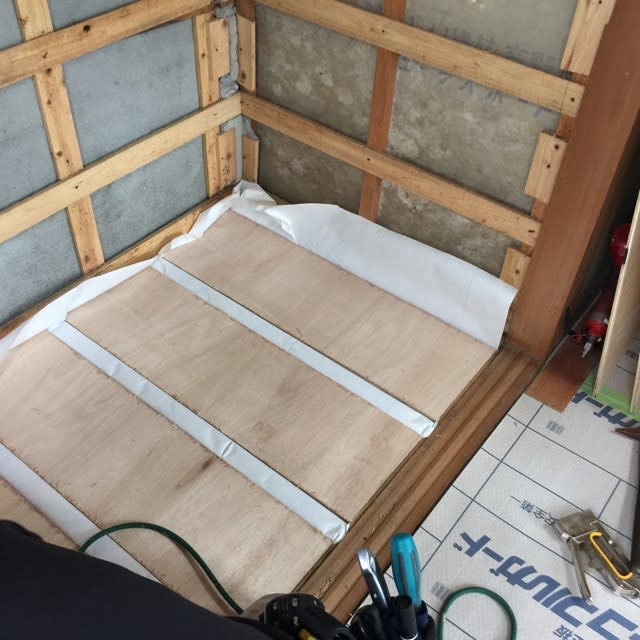 更に透湿シートを貼り床下もコンパネで補強しました。