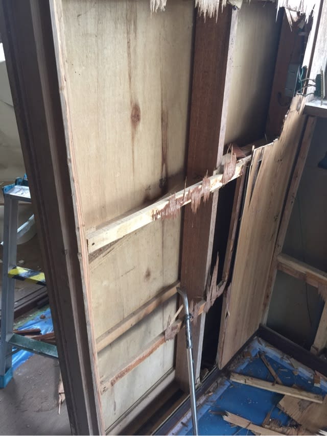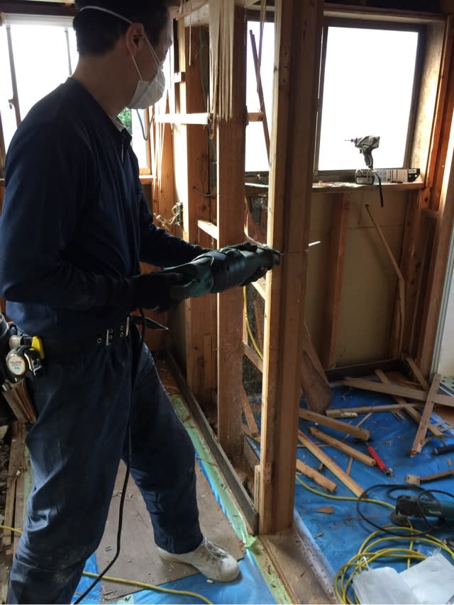開き戸から引き戸に変更するので一旦邪魔な柱は取ってしまいます。