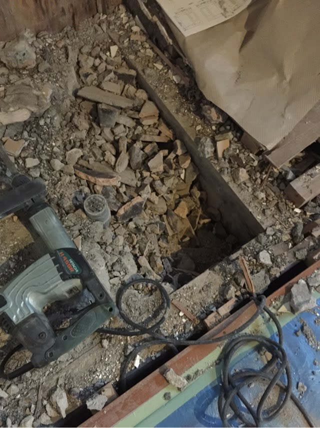 小便器側を解体中ですが床下から瓦片が沢山出てきました。