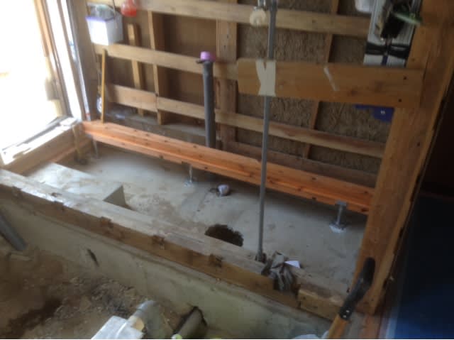 今のお風呂の奥行きが1.4mしか無いので今回は浴室の壁も基礎も取り除いて奥行きが1.6mの標準タイプのものをなんとかいれることにしました。