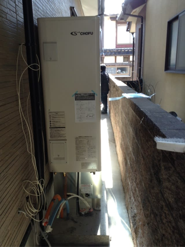 場所が狭いので薄型タイプのエコキュートを取付けしました。