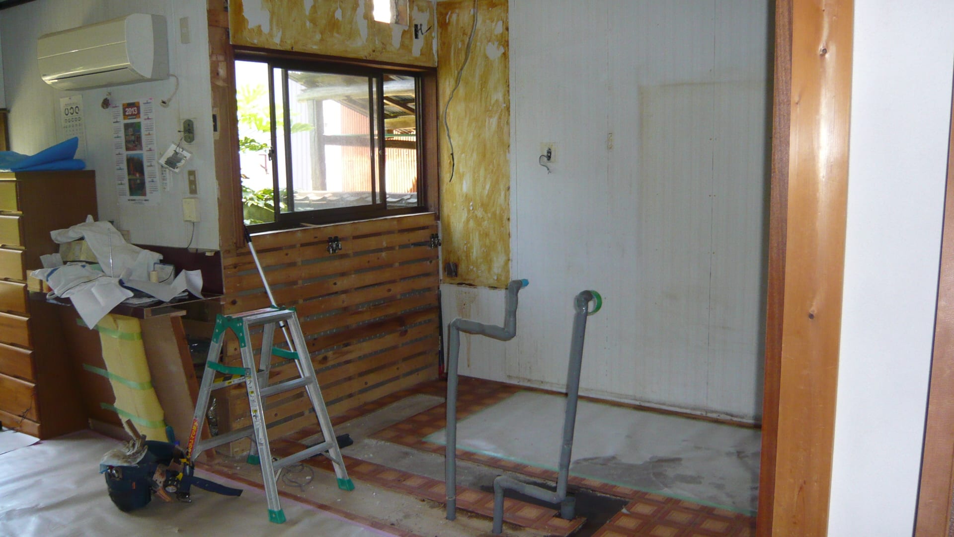 流し台も吊戸棚も撤去してすっきりしました。