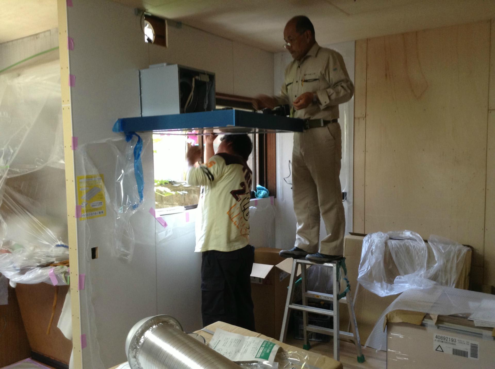 そしてキッチンの組立です、今回は対面キッチンなので換気扇はスリム型の整流板付きでお掃除もとても簡単です。