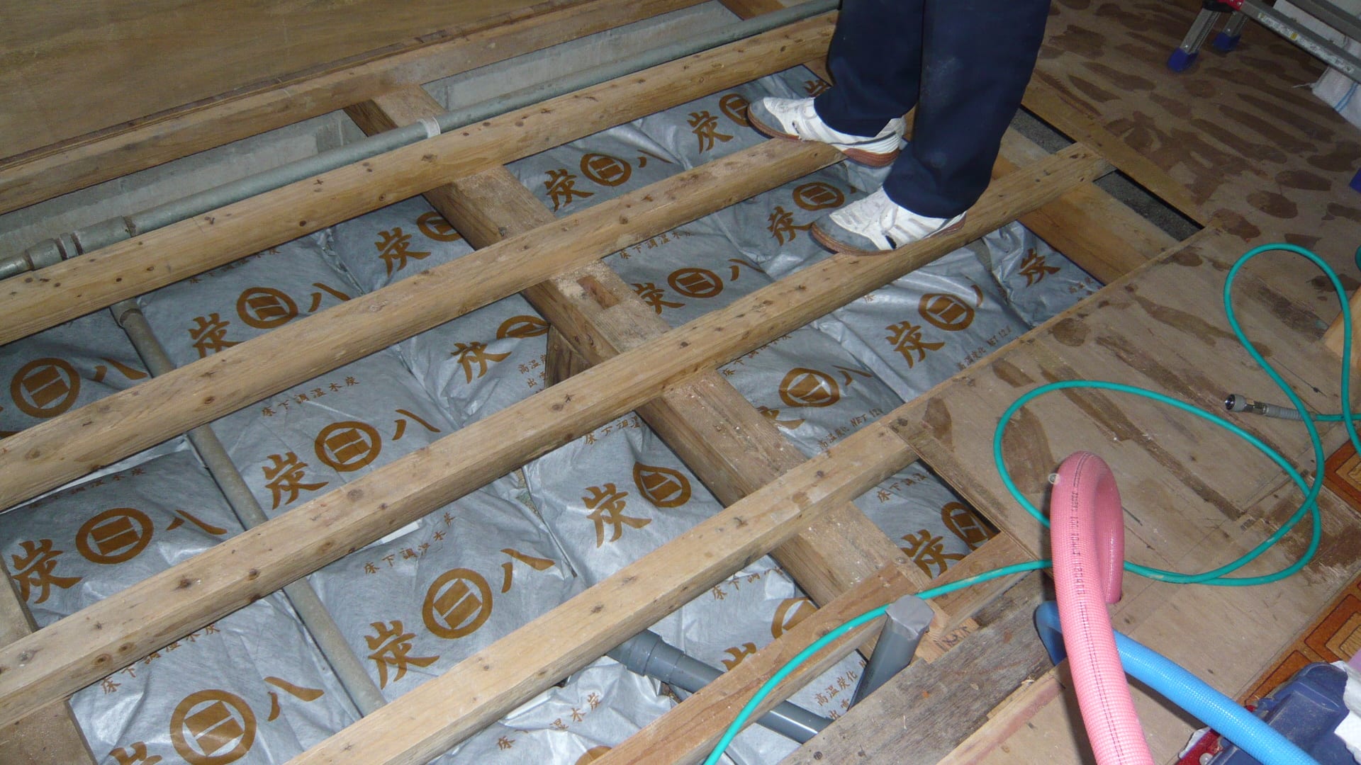すぐ隣が井戸になっているのでどうしても床下が湿気るようですので今回は床下に調湿材を入れることにします。