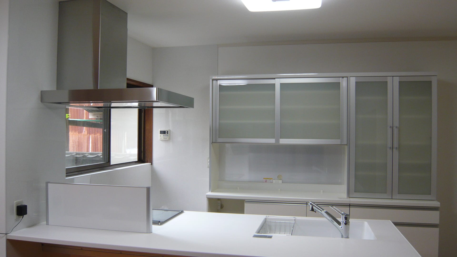 少し換気扇が窓に掛かるのですがあかり取りも必要ですので窓の所は開けて仕上げてます。